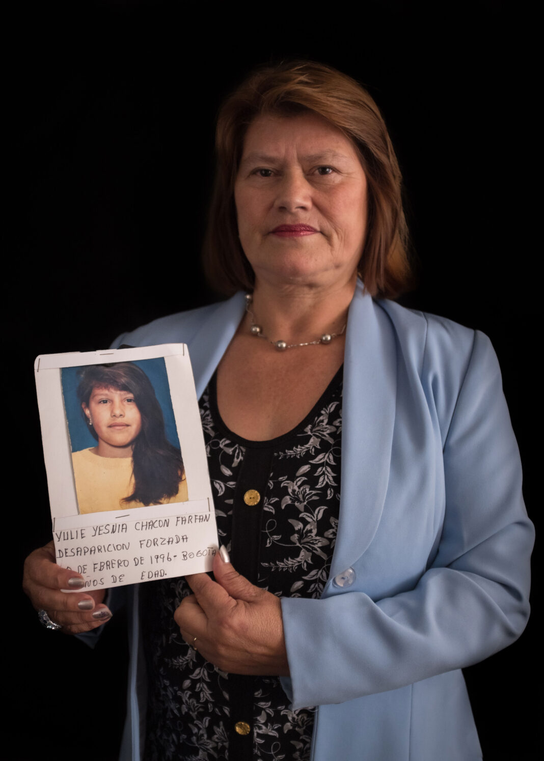 Es muy triste cuando uno recurría a las autoridades en ese entonces, y me dijeron que estaría por allá con el novio, entonces para mí eso fue muy duro, porque va uno con el corazón destrozado, recurriendo a las autoridades que son competentes para que le ayuden a buscar a uno a su hija en ese momento y le contestan eso; entonces uno ve la indolencia y la indiferencia que había con los menores desaparecidos. Eso es muy duro, que a uno le contesten eso. Yo seguí pidiendo ayuda a todas las autoridades competentes, como DIJIN, SIJIN, GAULA, INTERPOL, Procuraduría, Veeduría, Defensoría del Pueblo, País Libre, Extranjería de Pasaportes, Bienestar Familiar, Cruz Roja Internacional y todos los entes competentes para estos casos, pero hasta el día de hoy, 21 años después, sigo en la misma incertidumbre.